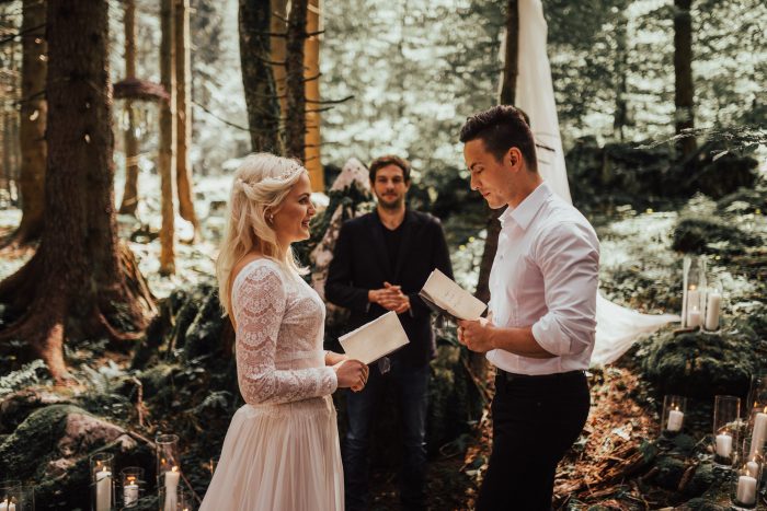 Today’s inspiration is all about the rustic woodland destination wedding! While a traditional wedding in or near your hometown is a beautiful thing, many brides are growing more and more inclined to the style, adventure, and intrigue of a destination elopement celebration at, say, a romantic rainforest retreat or centuries-old hamlet in Europe. If you’re on this list and love the rustic-chic aesthetic, this rustic wedding destination inspo post and real wedding gallery is for you.