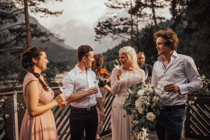 Considering the size and structure of your guest list? An elopement wedding celebration can range from a two- or three-person party to a sizable weekend getaway with a few dozen of your favorite people. As a general rule, destination weddings have about a 50% attendance rate, meaning that couples should expect around half of their invited guests to make the trek. You might bypass this calculation entirely by only inviting a handful of ride-or-die family and friends, or plan for a larger and less predictable affair with a guest list of 50-75. Whatever your count, consider your guests’ expectations in accordance with your budget and bandwidth. Do attendees need a structured agenda of horseback riding and wine tours? A set list of prep tasks? Affordable alternatives? If you’re willing to put in the effort for a destination elopement, you’ll need to anticipate logistics for guest accommodations, travel hassles, and weekend entertainment. (But we promise it’s worth it! There’s nothing quite like the magic and adventure of traveling to an extraordinary location with your nearest and dearest.)