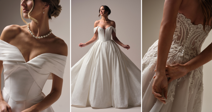 Today’s brides are redefining what “princess” really means, it’s not just tiaras and glass slippers anymore (though we’re not opposed). It’s power, confidence, and a little sparkle of drama. Whether you’re drawn to clean satin minimalism or a layered tulle moment straight out of a royal daydream, these gowns are made to turn heads and melt hearts.